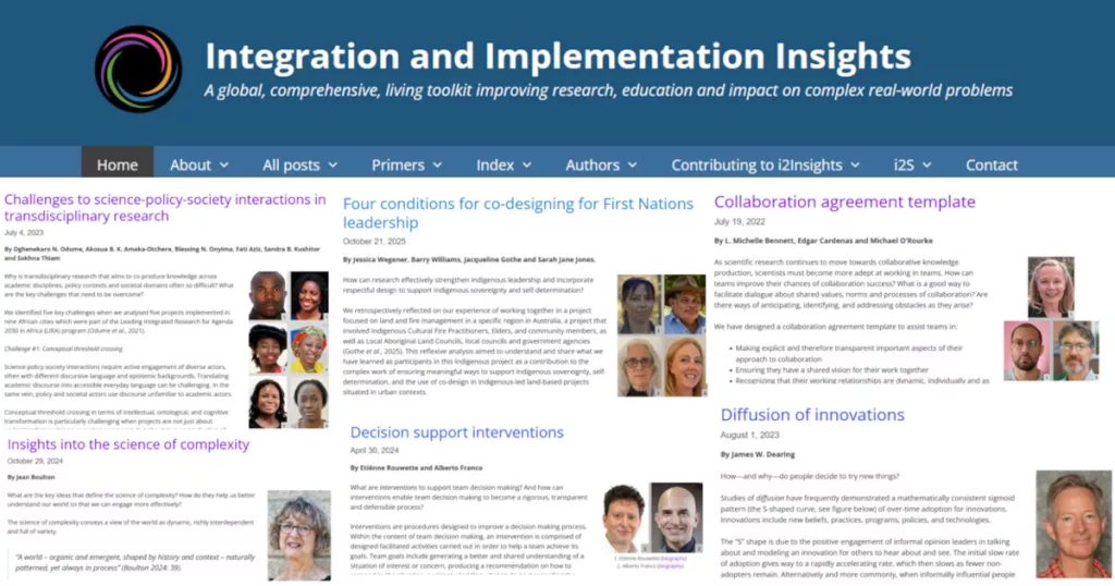 A global toolkit for tackling complex problems with more than 600 different methods Ever wish you had a free toolkit that helped you deal with the complexity of societal and environmental problems containing insights from experienced researchers and educators globally? Well, check out Integration and Implementation Insights (i2Insights), which over the last 10 years has collected 600 tools, ranging from simple useful methods and frameworks, to guidelines for more intricate processes, to insights into complex concepts and theories. For example, you can find: Idea tree: A tool for brainstorming ideas in cross-disciplinary teams Navigating power: A partial pragmatic map Four conditions for co-designing for First Nations leadership Data variety and why it matters Understanding values: Schwartz theory of basic values A host of approaches i2Insights tools are drawn from systems thinking, inter- and transdisciplinarity, action research, complexity science, implementation sciences, post-normal science, the science of team science and a host of other approaches to dealing with complexity in whole or part. Tools are also drawn from approaches that may not be recognised in Western knowledge systems, such as culturally-appropriate inclusion of Indigenous knowledge, and country- or region-specific approaches. For example: An approach for operationalizing and sustaining systems improvements A self-assessment checklist to improve interdisciplinarity in research projects What roles do you play in inter- and transdisciplinary projects? Epistemic justice and its relevance to transdisciplinary research Six tips for using research to influence policy A tool for developing shared awareness of team member research interests and expertise Topics and tags Each tool is indexed using 14 main topics, and more than 350 more specific tags. The 14 main topics are: systems, context, unknowns, diversity, and integration, which are involved in understanding problems more comprehensively; decision making, research implementation and change, which are central to supporting policy and practice change to address problems; communication, teamwork and stakeholder engagement, which are essential for interacting effectively; education, evaluation and institutionalisation. Also core to this systematic way of tackling complex problems is recognising the inevitability of imperfection, meaning that problems cannot be fully understood, improvements will not work for everyone or for all time, and interactions will always be challenging. Each individual tool aims to be a short, easy-to-read, self-contained, “gold nugget”, providing enough basic information to give readers a good idea about whether it may be useful in their own work. One tool is published each week, with e-mail notification available. And the toolkit is used in 193 counties with more than 1.7 million views. Building connections As a toolkit that is built through the contributions of more than 750 researchers and educators from 61 countries (and counting!) and that invites comments on those contributions, i2Insights aims to promote connections and community building, globally and across approaches, as well as involving those tackling different kinds of complex societal and environmental problems, such as health, environment and security, which often use different approaches. In addition, i2Insights also aims to build connections across career types and levels, with contributors both inside and outside the academic mainstream, and at all career levels ranging from students to professors and university executives. Contributions are, of course, also welcome. See for yourself at https://i2Inisghts.org and maybe you will agree with others who have commented: Publishing … on i2Insights was a turning point for us and our workshop; we’re really grateful for the opportunity, and for your advice along the way. … inspiration for our transdisciplinary course and in building the framework that we use. I must say I’m positively impressed with the thoughtfulness of the comments. I frequently visit and download resources … and have for years. They are great resources! … it sure becomes more interesting and inspiring from year to year. Gabriele Bammer SUBSCRIBE TO OUR NEWSLETTER To stay up to date with our projects and the development of the EHC Read more articles
